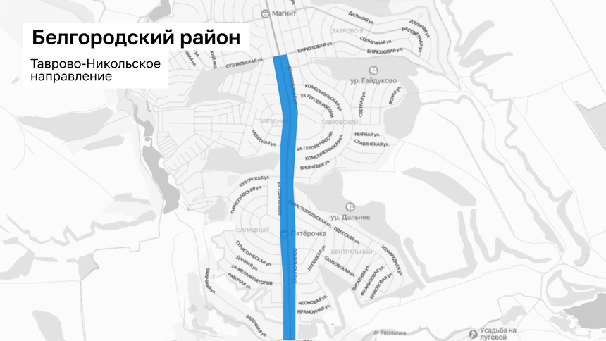 Участок занимает выгодное положение у оживленной дороги Таврово – Соломино между микрорайонами Таврово-10 и Таврово-3, локация интересна наличием съезда с основной трассы и прилеганием к второстепенной дороге. Такое положение удобно и для жителей микрорайона и для проезжающих по основной дороге.