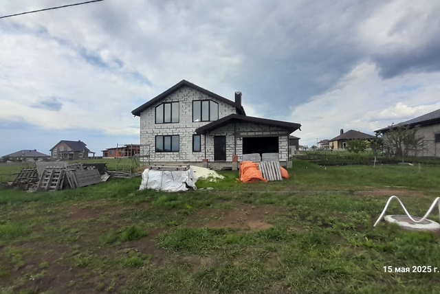 Земельный участок ровной формы, на котором уже выполнен каркас дома с замкнутым контуром. Есть все коммуникации: электроснабжение, водоснабжение, ИОС, газоснабжение.